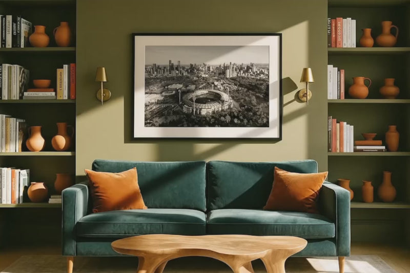 Transport yourself to the beating heart of Victoria with this striking Melbourne MCG black & white print. Featuring an aerial photo of Melbourne's skyline with the iconic MCG in the foreground, this print is sure to become a treasured piece of home decor. Get ready to be inspired!