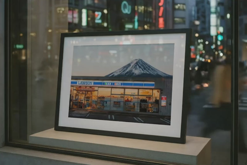 Experience the perfect blend of everyday life and natural wonder in this original photograph by Peter Yan. Captured near Kawaguchiko Station, this striking image features a brightly lit Lawson convenience store set against the breathtaking backdrop of Mount Fuji. The snow-capped peak of Japan’s iconic mountain is beautifully framed by the warm glow of twilight, highlighting the harmony between modern convenience and timeless natural beauty. This artwork is a tribute to the charm of Japanese culture, blending vibrant city life with serene landscapes, and is a must-have for those who appreciate authentic, original photography with a story.