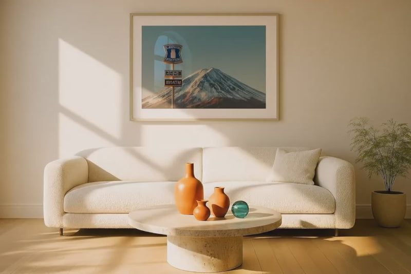 This minimalist yet powerful photograph by Peter Yan highlights the essence of Japan’s blend of culture and natural beauty. Featuring the iconic Lawson Station sign set against the awe-inspiring backdrop of Mount Fuji, the image captures a moment of quiet simplicity and Galleryur. The clean blue sky and snow-capped peak provide a stunning contrast to the familiar convenience store signage, symbolising the harmony between modern convenience and timeless natural landmarks. Taken in Kawaguchiko, this original piece offers a unique perspective on Japan's everyday life, making it a striking and thoughtful addition to any collection.